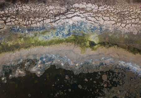 圖為2018年3月30日在江蘇連云港燕尾港鎮化工園區內拍攝的一處水塘,離海一堤之隔的池塘水和岸灘“五顏六色”?! ∮浾摺±铐憽z