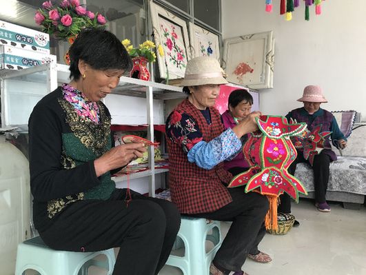 在青海省海西蒙古族藏族自治州烏蘭縣銅普鎮都蘭河村,村民在制作手工藝品。記者 鄧萬里 攝