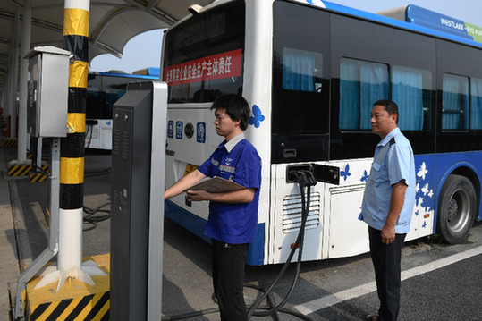 行駛中無尾氣排放,實現“零排放、零污染”的純電動公交車已成為杭州的一道亮麗風景線。記者 黃宗治 攝
