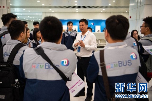 10月19日,港珠澳大橋澳門邊檢大樓穿梭巴士員工接受培訓。新華社記者 張金加 攝