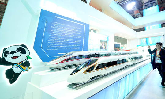 在首屆進博會的國家展上設立的中國館,占地約1500平方米,取名“共羽華平”。代表中國企業創新成果的復興號高鐵、國產大飛機、港珠澳跨海大橋等悉數亮相,吸引著世界各國參展商的目光。