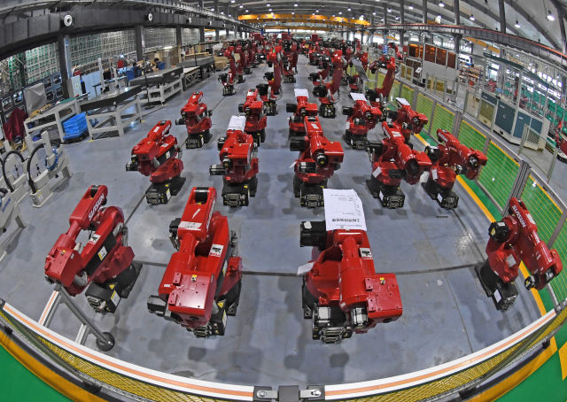 這是沈陽新松機器人自動化股份有限公司工業機器人生產車間(2017年6月6日攝)。新華社記者 楊青 攝