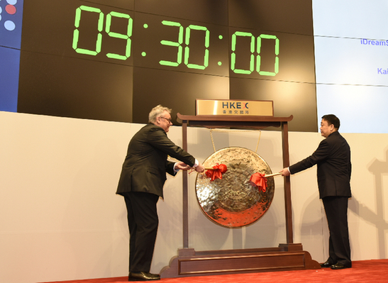 兗礦集團董事長李希勇、兗煤澳洲獨立非執行董事芮捷銳為兗煤澳洲在港交所上市敲鑼。(資料照片)