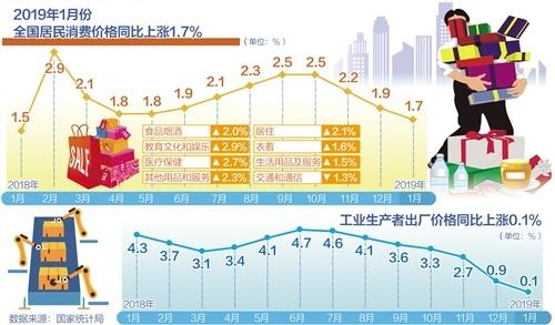 專家表示,2019年,既不必過于擔心通脹壓力會成為中國經濟運行的主要矛盾,也不必對通縮風險反應過度。從CPI看,北京大學經濟學院教授曹和平認為,今年上半年物價增速回落的趨勢遠大于上漲的趨勢,目前物價增幅正處于穩定下行的區間。預計2月份CPI增速會徘徊在1.7%至1.9%之間。