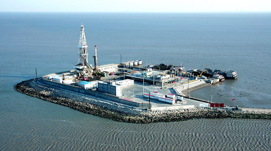 驅車從天津中心城區出發一路駛往東南方向的濱海新區,經津港高速進入大港油田礦區,馬路兩側或單獨安置或三兩成群的“磕頭機”——抽油機提醒著腳下這片沃土蘊含有豐富的原油。前往埕海2-2人工島的路途要更遠。從陸上開車過去還要經過一段數公里長的進海路。隆冬時節,橋兩側一面是浮冰一面是海水,分外明顯。