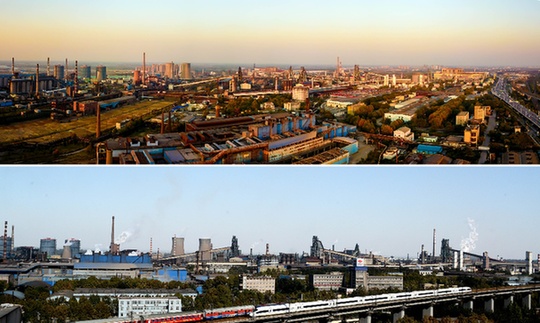 2015年11月27日拍攝的停產前濟鋼廠區的資料照片。新華社發