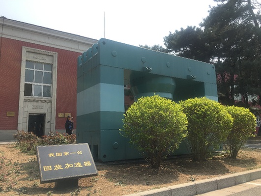 走進原子能院科研生產區中心位置,在一座紅色的廠房前,一塊三米多長、兩米多高的藍綠色“大塊頭”十分顯眼,這便是我國第一臺回旋加速器的主磁鐵。穿過錢三強、王淦昌兩位科學家雕像所在的花園,與之東西遙遙相望的是我國第一座重水反應堆。