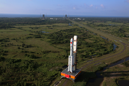 2017年4月17日,長征七號遙二任務火箭完成發射場總裝正在轉場。(資料照片)