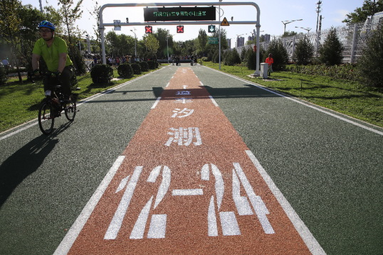 5月31日,北京回龍觀至上地自行車專用路開通,這是北京首條專門服務于自行車通行的道路,全長約6.5公里。新華社發(劉憲國 攝)