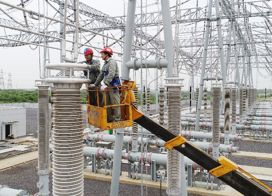 近日,在武漢市東湖高新區龍泉街,國網湖北送變電工程有限公司施工人員在檢查鳳凰山變電站設備。記者 肖藝九 攝