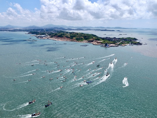 在2019年首屆福清開漁節暨海洋文化旅游節上,漁船在海上行駛。記者 姜克紅 攝