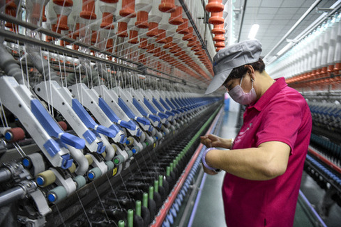 在位于固原市經濟技術開發區的寧夏豐源紡織廠,工人在機臺上忙碌。記者 馮開華 攝