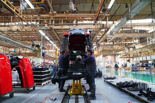 圖為工人在一拖集團工廠的生產流水線上工作。記者 盧燁 攝