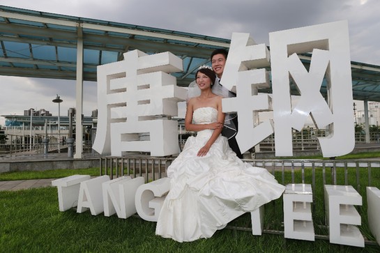 一對在河北鋼鐵集團唐山鋼鐵公司工作的新人在花園般的廠區拍攝結婚照。記者 任正來 攝