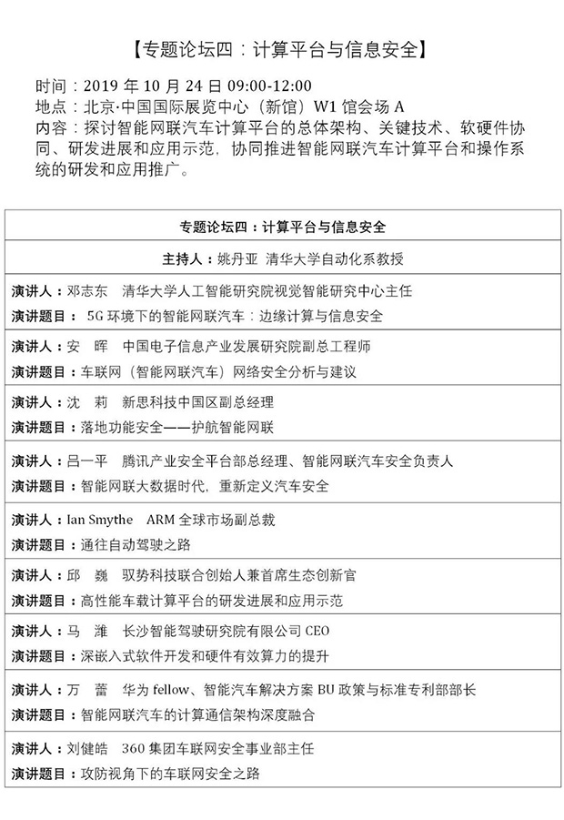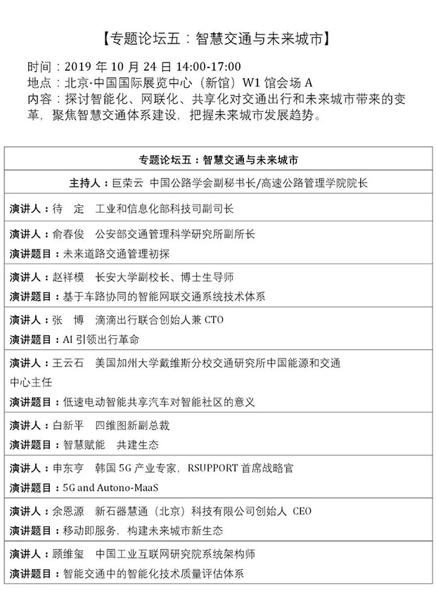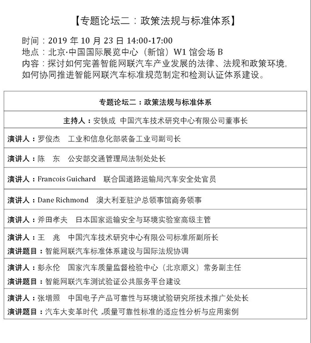 經國務院批準,世界智能網聯汽車大會(WICV) 將于2019年10月22-25日在北京隆重召開。大會著眼于全球智能網聯汽車產業的生態環境構建和產業升級,通過主論壇及專題論壇、院士講堂、開發者大會、閉門會等多種形式,共同交流探討智能網聯汽車在技術創新、政策導向、市場模式等領域的成功經驗與發展趨勢,凝聚產業共識,明晰政策方向,探索技術路徑。 主辦單位:北京市人民政府、工業和信息化部、公安部、交通運輸部、中國科學技術協會 承辦單位:工業和信息化部裝備工業發展中心、北京市經濟和信息化局、中國電子信息產業發展研究院、北京市順義區人民政府、中國國際貿易促進委員會機械行業分會、中國電工技術學會 時間:2019年10月22日-25日 |