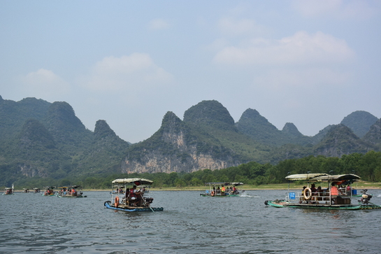 桂林市漓江岸邊的村民在從事竹筏旅游業。記者 董振國 攝