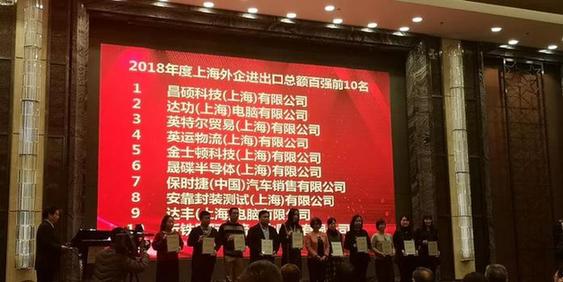 其中,晟碟半導體(上海)有限公司,入圍上海外企進出口總額百強前十名,排名第六,市領導親自為企業授牌予以表彰。