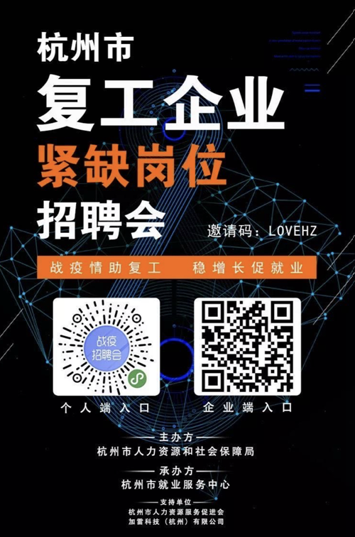 如果您對來杭工作有興趣,可點擊下圖杭州“線上招聘會”,查看杭州復工企業用工需求。杭州歡迎您!