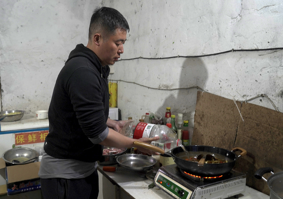 古覺村駐村干部彭楊在做晚飯。記者 李力可 攝