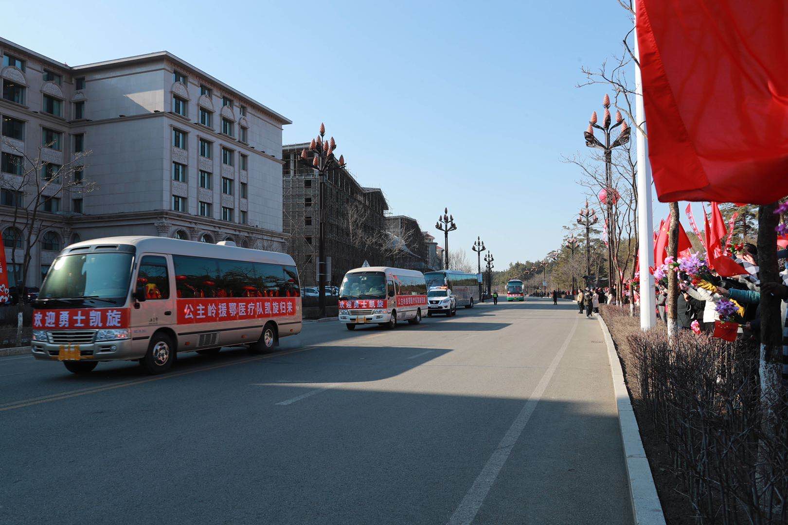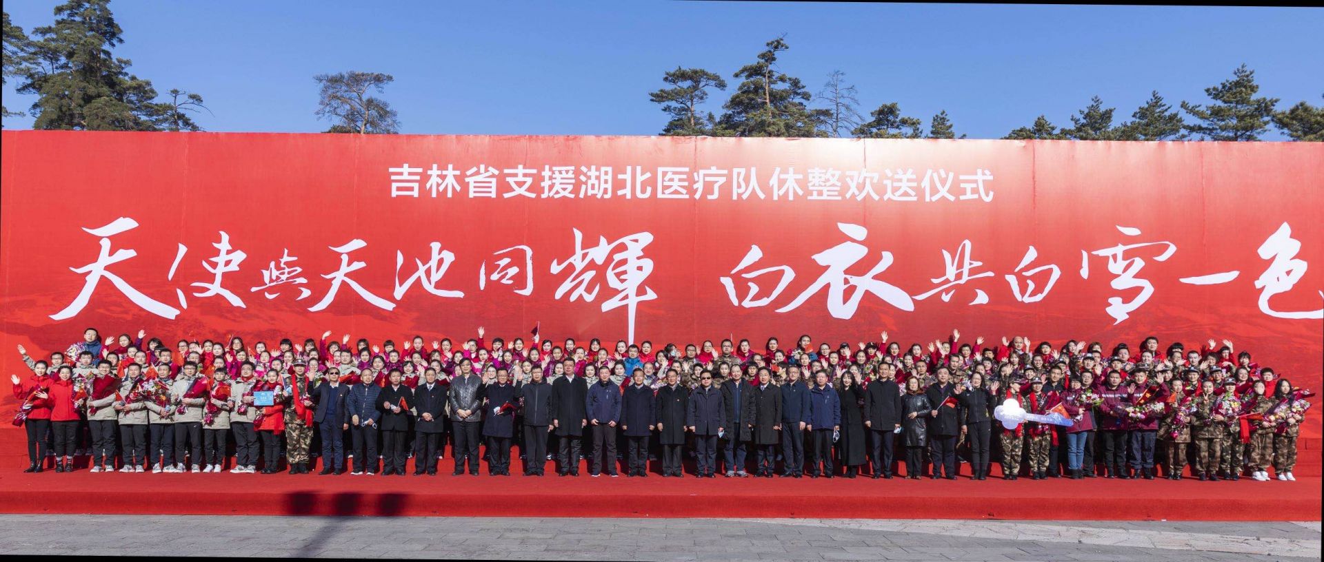 ????4月5日上午,吉林省首批援鄂返吉醫療隊結束集中休整返程歡送儀式在長白山池北區舉行。吉林省支援湖北醫療隊首批返程的145名隊員在長白山14天的休整期正式結束,分別返程長春、通化、白山、松原、公主嶺等地。