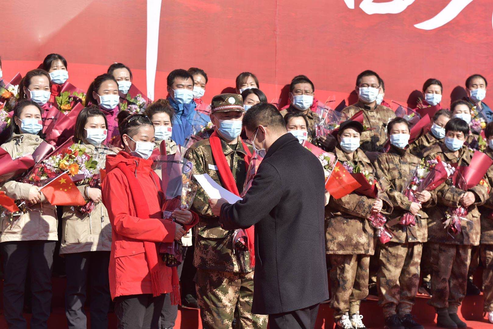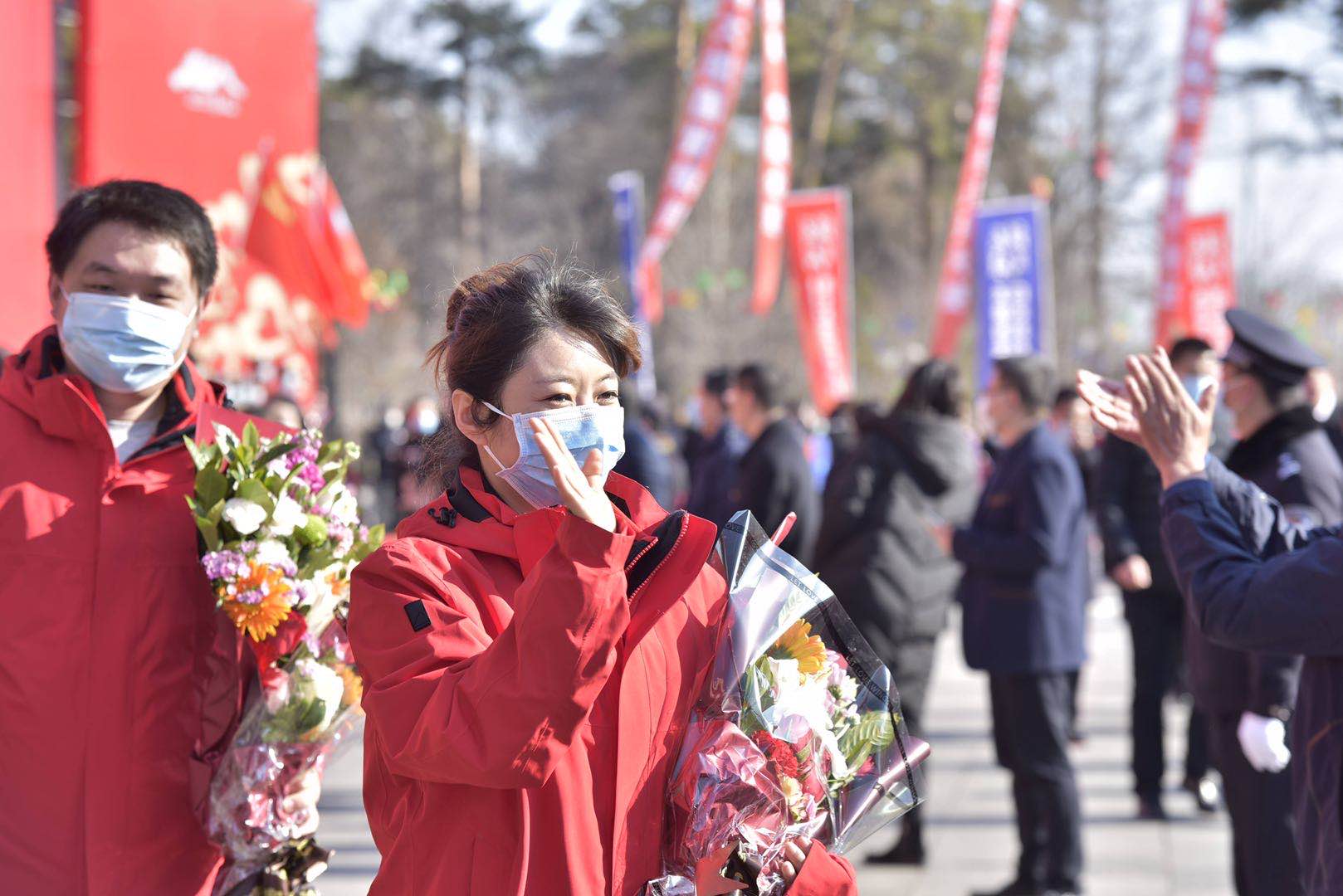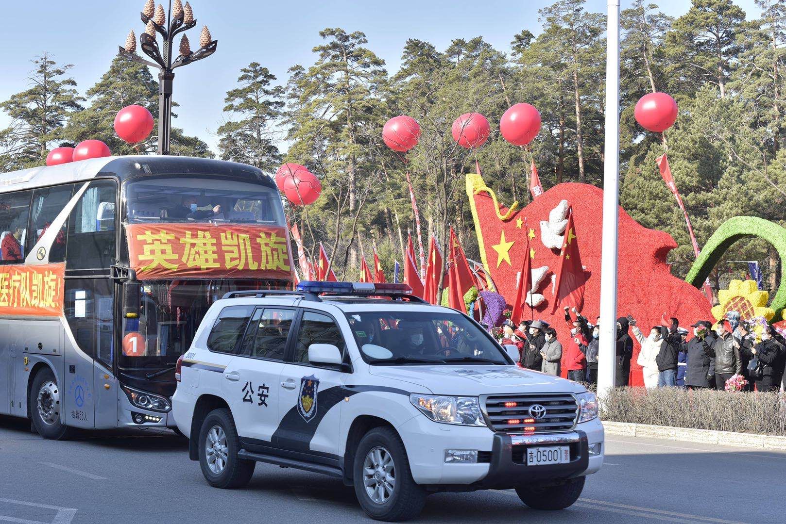 ????長白山衛健局局長張在茂主持儀式。省衛健委副主任楊春光、省衛健委王哲、通化市衛健委于鳳翔、長白山管委會旅游文體局耿德勇、白山市衛健委孫學明、公主嶺市衛健局林澤禮、吉林省前衛醫院李海波,以及相關部門、長白山池北區群眾、各地迎接抗疫英雄的車隊等3000余人參加了歡送儀式。