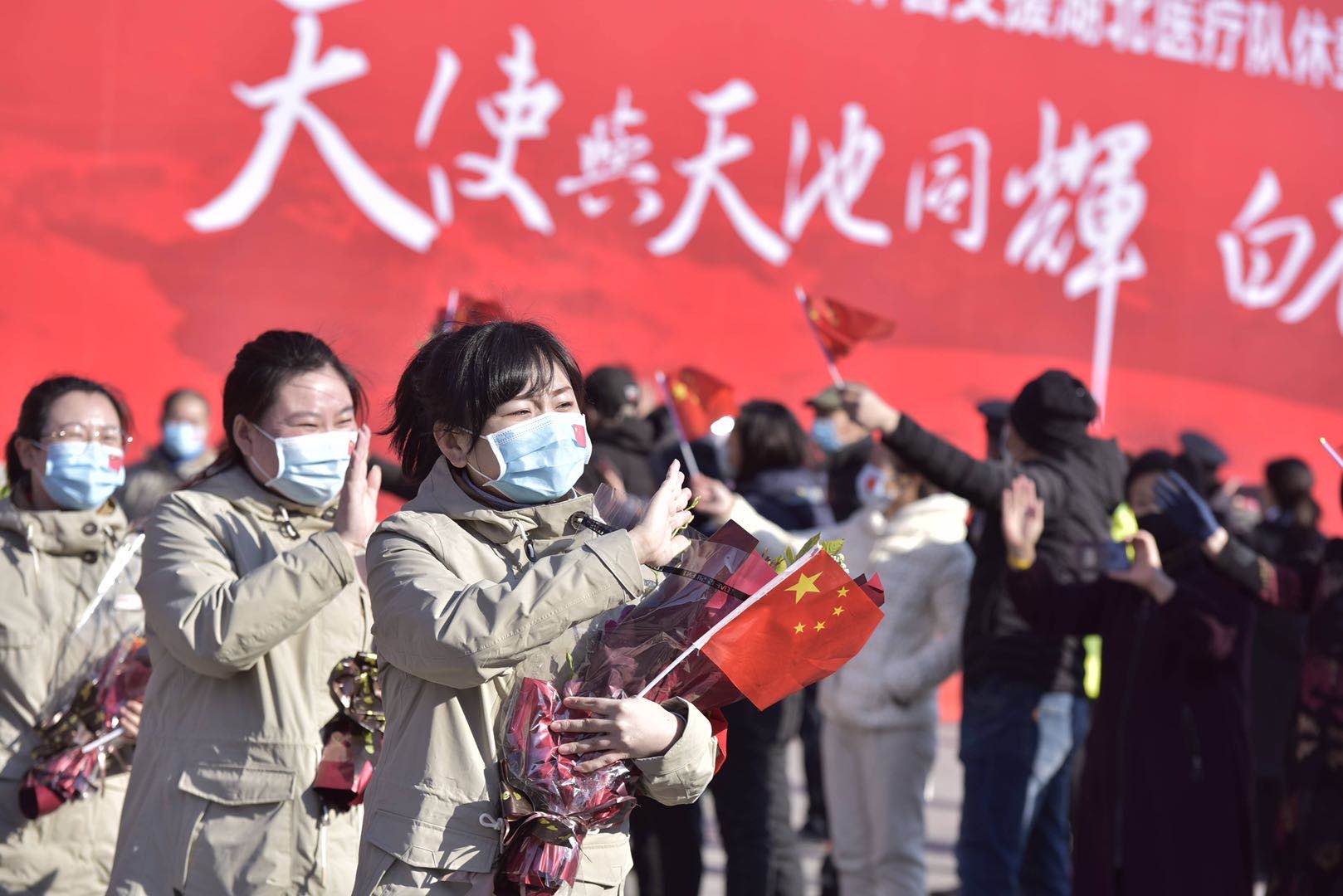????張曉慧說,一場疫情使我們集結在一起,使我們每一名隊員都快速的成長了起來,這就是我們人生最大的收獲。我們深深的知道,掌聲和鮮花是對我們的認可和鼓勵,更知道這些是對我們的鞭策。今天我們即將分離,但是我們的任務和責任并沒有結束,我們會帶著疫情前線的收獲和經驗,重返我們各自的崗位,繼續秉承我們的優良作風,繼續為抗疫工作、繼續為家鄉的人民作出貢獻?!疤焓古c天池同在,白衣共白雪一色”,我們的隊員與長白山結下了不解之緣,我們永遠記得長白山秀麗的風景,永遠記得長白山人民和全省人民的深情厚誼。祝愿我們的祖國“疫情阻擊戰”早日取得全面、徹底的勝利。