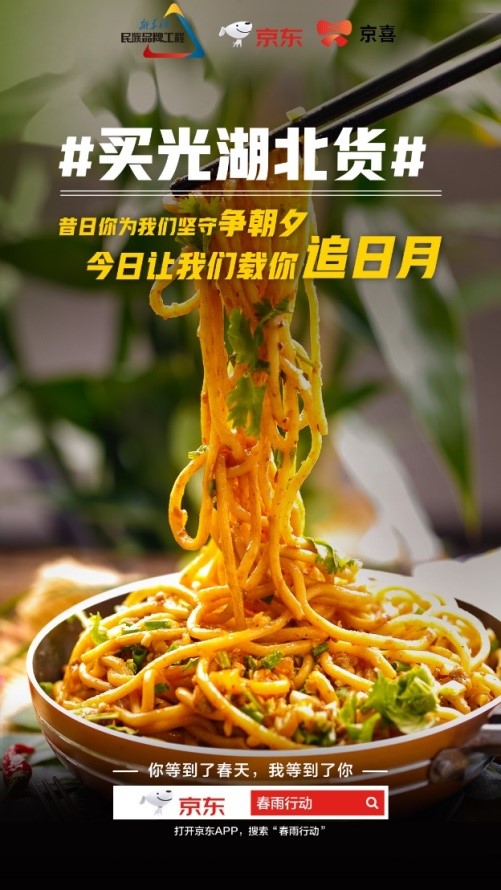 新華社民族品牌工程于4月1日率先聯合京東發起“買光湖北貨”行動,聯動新華社湖北分支機構,協助組織貨源上線,整合全媒體資源,推廣湖北各類產品。