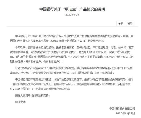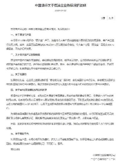 此次是自“原油寶”事件發生后,中行就此事發布的第三次說明,說明全文如下: