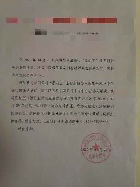 此前,多個投資者已將中行訴至銀保監會及各地監管分局,記者從投資者處了解到,目前部分人得到了來自監管部門的反饋。