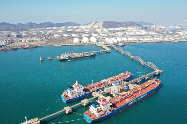 大連港油品碼頭,有大型船舶正在卸油作業。資料照片