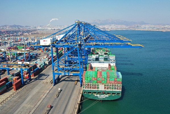 5月初,“海豐海南”輪在大連港集裝箱碼頭靠泊作業,來自越南的水果卸船。資料照片