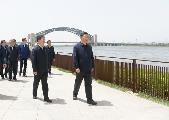 2020年5月11日至12日,中共中央總書記、國家主席、中央軍委主席習近平在山西考察。這是5月12日中午,習近平在汾河太原城區晉陽橋段考察汾河水治理及沿岸生態保護、城市環境建設等情況。 新華社記者 李學仁 攝