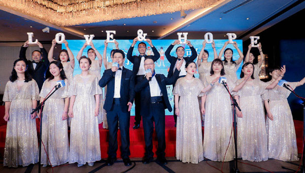 晚會現場,中國器官移植發展基金會工作人員合唱《You raise me up》《相逢是首歌》兩首歌,弘揚公民志愿捐獻大愛精神。(圖片來源:中國器官移植發展基金會)