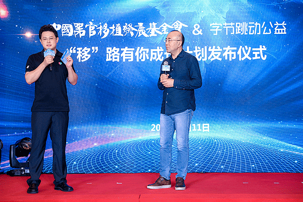 中國器官移植發展基金會聯合字節跳動公益共同發起“移”路有你成長計劃,雙方將共同作為“器官捐獻”的推動方?;饡撠熞敫嗥鞴倬璜I與移植專業性、真實性的解讀,通過抖音、頭條等傳播平臺,讓更多人關注器官捐獻,并完成器官捐獻志愿登記。中國器官移植發展基金會副理事長兼秘書長趙洪濤、北京字節跳動科技有限公司副總裁李濤共同啟動該計劃。(圖片來源:中國器官移植發展基金會)