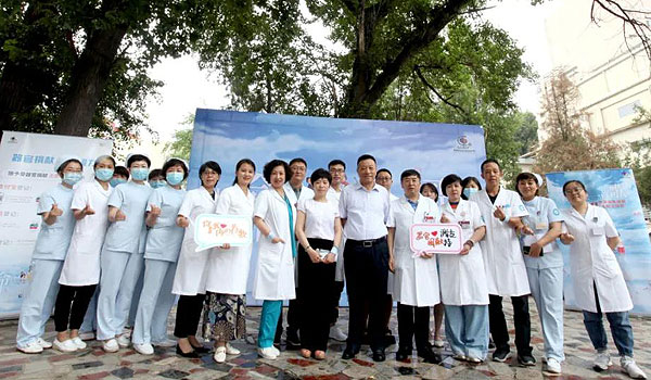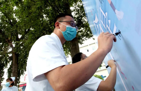 今天上午,山西省第二人民醫院在醫院中心花園舉行“生命是一首歌” ———中國器官捐獻日主題公益宣傳活動?;顒臃譃楣嫘?、現場登記、發放禮品互動、免費義診四個環節,向參加活動的職工、患者及患者家屬普及器官捐獻相關知識,讓大家了解器官捐獻的意義,現場嘉賓、醫務人員以及參加活動的患者及家屬在簽字墻上簽下承諾和大愛。