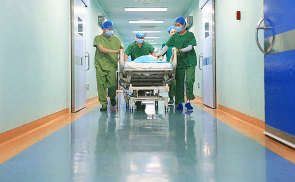 2019年2月4日,在湖南衡陽南華大學附屬第二醫院,醫務工作者準備進入手術室。 新華社發(曹正平 攝)