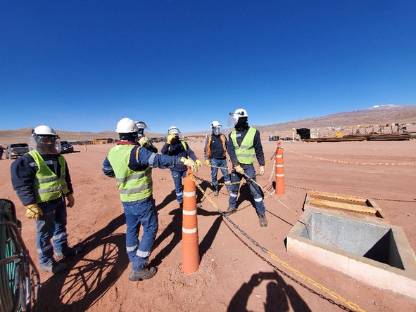 5月22日,技術人員在阿根廷高查瑞300兆瓦光伏發電項目現場安裝升壓站與光伏區營地控制中心的通訊光纜。