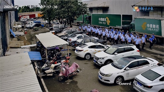 7月17日,臨海市組織執法隊伍進廠,叫停河馬集市開業。記者 王文志 攝