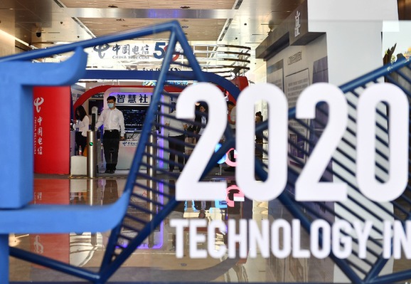 參觀者在2020全球硬科技創新大會開幕式上體驗智能產品。記者 張博文 攝