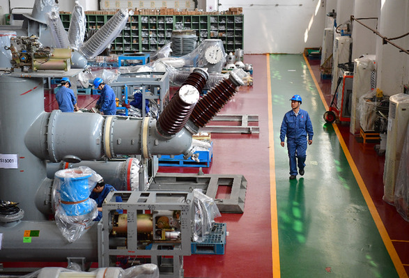 工作人員在中國西電集團西安西電開關電氣有限公司試制車間巡視設備。記者 邵瑞 攝