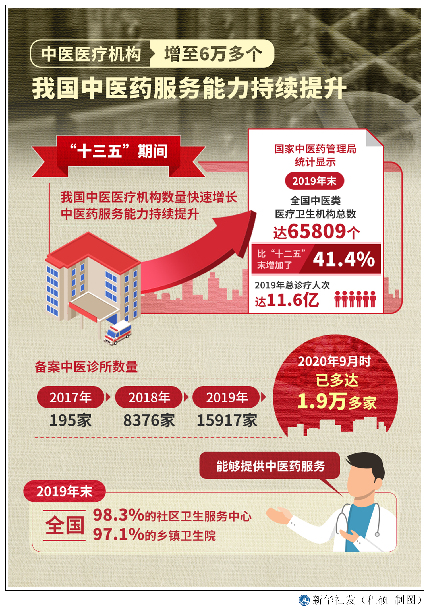 中醫醫療機構增至6萬多個 我國中醫藥服務能力持續提升。新華社發 程碩 制圖