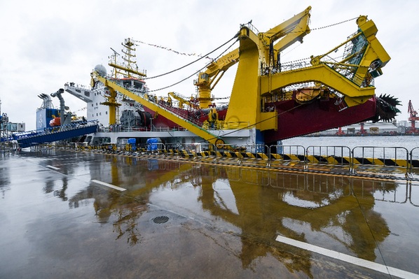 我國自主研發的重型自航絞吸船“天鯤號”亮相2020中國海洋經濟博覽會。記者 毛思倩 攝