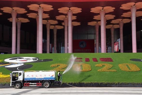 11月3日拍攝的國家會展中心(上海)南廣場。 第三屆中國國際進口博覽會暨虹橋國際經濟論壇開幕式將于11月4日在上海舉行。 新華社記者 張豪夫 攝