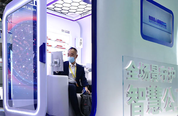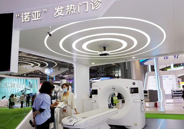 11月5日,在公共衛生防疫專區,GE醫療展示諾亞發熱門診解決方案。新華社記者 劉穎 攝