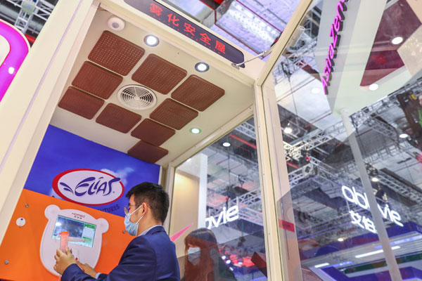 11月6日,工作人員在公共衛生防疫專區的阿斯利康展臺展示霧化安全屋。新華社記者 張玉薇 攝