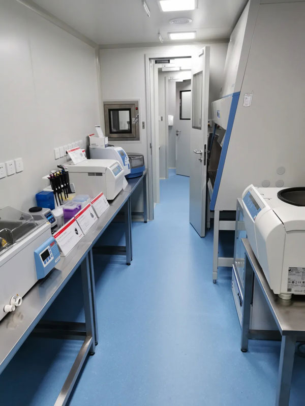 11月5日,工作人員在公共衛生防疫專區的賽默飛移動方艙核酸檢測實驗室內進行展示。新華社記者 張玉薇 攝