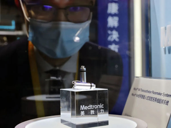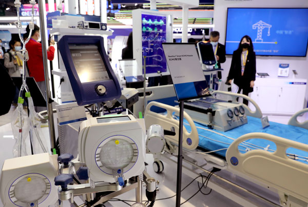 11月5日,第三屆進博會醫療器械及醫藥保健展區美敦力展臺展出新一代ECMO技術。新華社記者 劉穎 攝