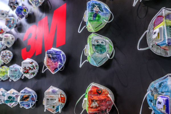 11月6日在公共衛生防疫專區的3M展臺拍攝的手繪口罩。新華社記者 張玉薇 攝