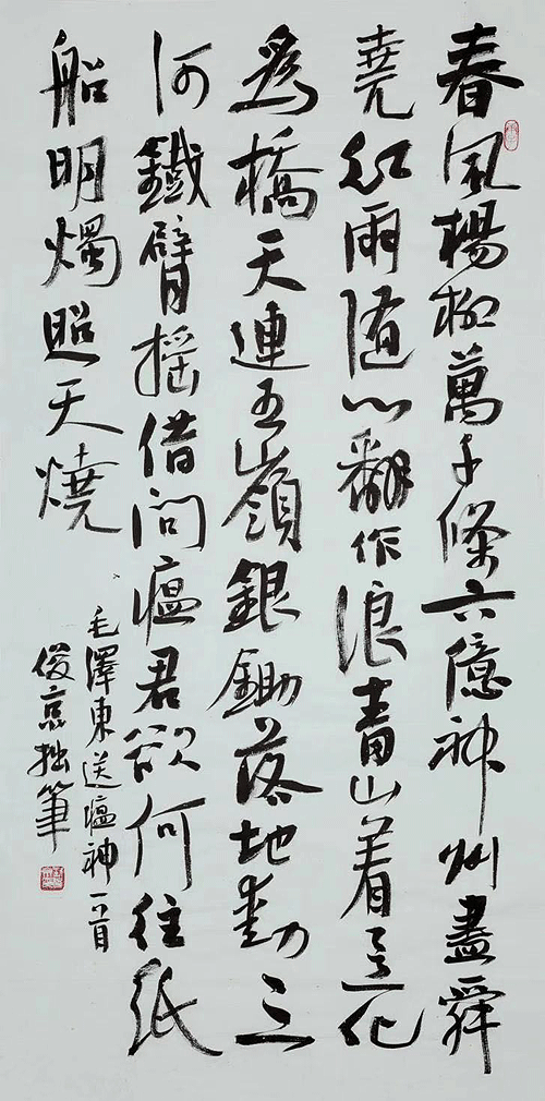 筆墨合時而作,文章經世而著。君子所能自強者,以其不息之精神也。劉俊京先生以筆墨回應時代之聲音,以自我體現時代之精神,所以其書藝能揮斥方遒,指點江山。余更期待見劉俊京先生其人其書能愈發筆墨長新,與時俱進?。T劍星)