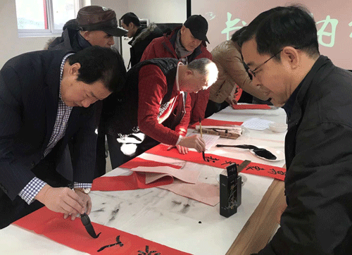 劉俊京(左一)在北京東城區建國門街道為居民寫春聯?